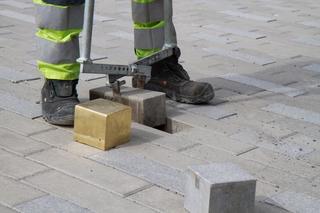 ↑ Santiago Sierra | 20 Pieces of Road Measuring 100 x 100 cm Pulled up from the Floor at MMK